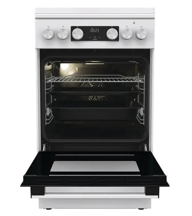 A Gorenje tűzhelyek megnövelt sütőfelületet és extra nagy tepsiket kínálnak. Az innovatív megoldások lehetővé teszik az optimalizált energiafogyasztást és egyenletesen elkészített ételeket, függetlenül a mennyiségtől. A teljes sütőszélesség hatékonyan használható, míg a kiváló technológia biztosítja, hogy az étel minden szinten egyenletesen készüljön el.