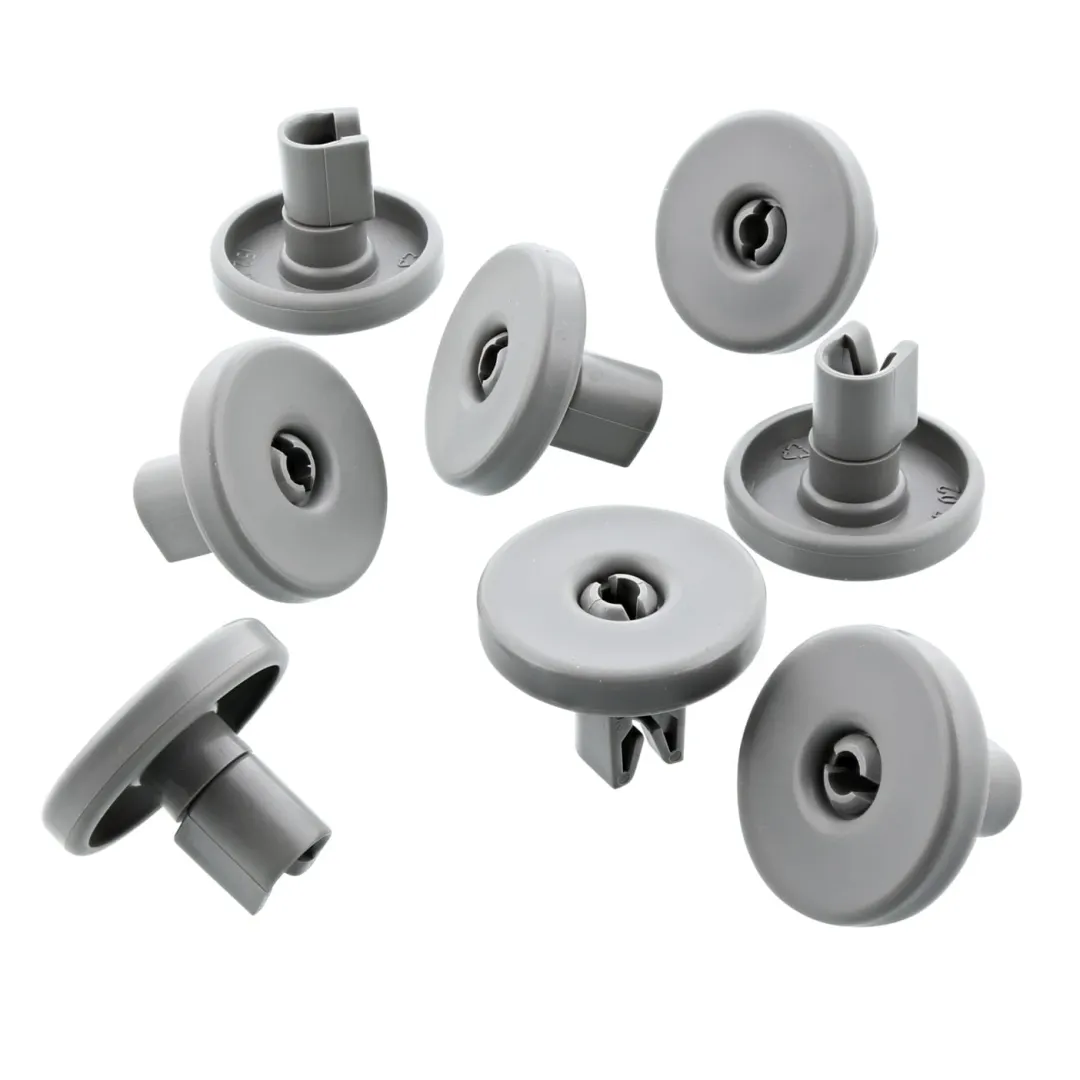 A mosogatógép alsó kosarának akadálymentes mozgatását 8 kis görgő biztosítja. Ha ezek közül egy vagy több eltörik, a megpakolt kosarat nehéz biztonságosan kihúzni vagy betolni. A régi görgők szerencsére egyszerűen kipattinthatók, az újakat pedig ugyanolyan könnyedén felrakhatja a helyükre.