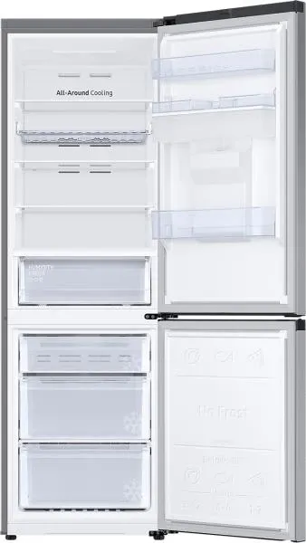 Az All-around Cooling rendszer gondoskodik arról, hogy az egész hűtőszekrényt egyenletesen és azonos hőmérsékleten hűtse, sarkától sarokig. Az állandó hőmérsékletet az egyes polcok mellett elfúvott hideg levegő biztosítja. Így minden tétel hatékonyan lehűl, és az élelmiszerek tovább maradnak frissek.