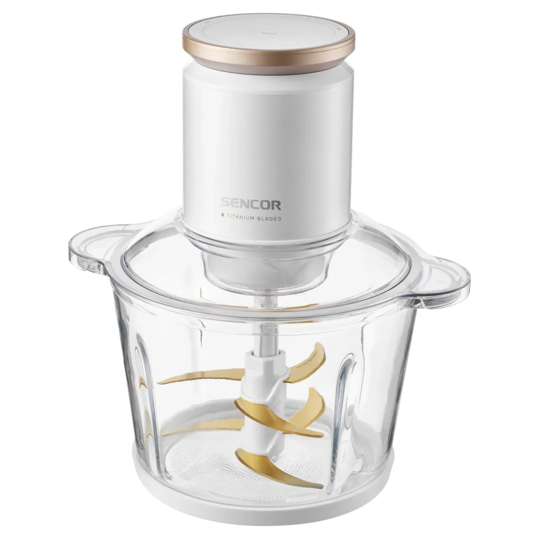A Sencor SCB 7000WH konyhai aprító készülék 6 kiváló minőségű aranyozott, titán rétegű pengével van felszerelve, így könnyedén apríthatsz húsokat, zöldségeket, gyümölcsöket, fűszernövényeket, sőt, akár dióféléket is. Tökéletes választás pürék, bébiételek, illetve háziszószók – például majonéz, krémek vagy habok – elkészítésére. A 3,0 literes BPA mentes műanyag edény a mosogatógépben is gond nélkül tisztítható, a csúszásgátló talpak pedig biztosítják a stabil munkavégzést. A Sencor SCB 7000WH aprító tehát nemcsak praktikus, de biztonságos és könnyen karbantartható eszköz is, amely minden konyhában nagy segítséget nyújt a mindennapi ételkészítésben.