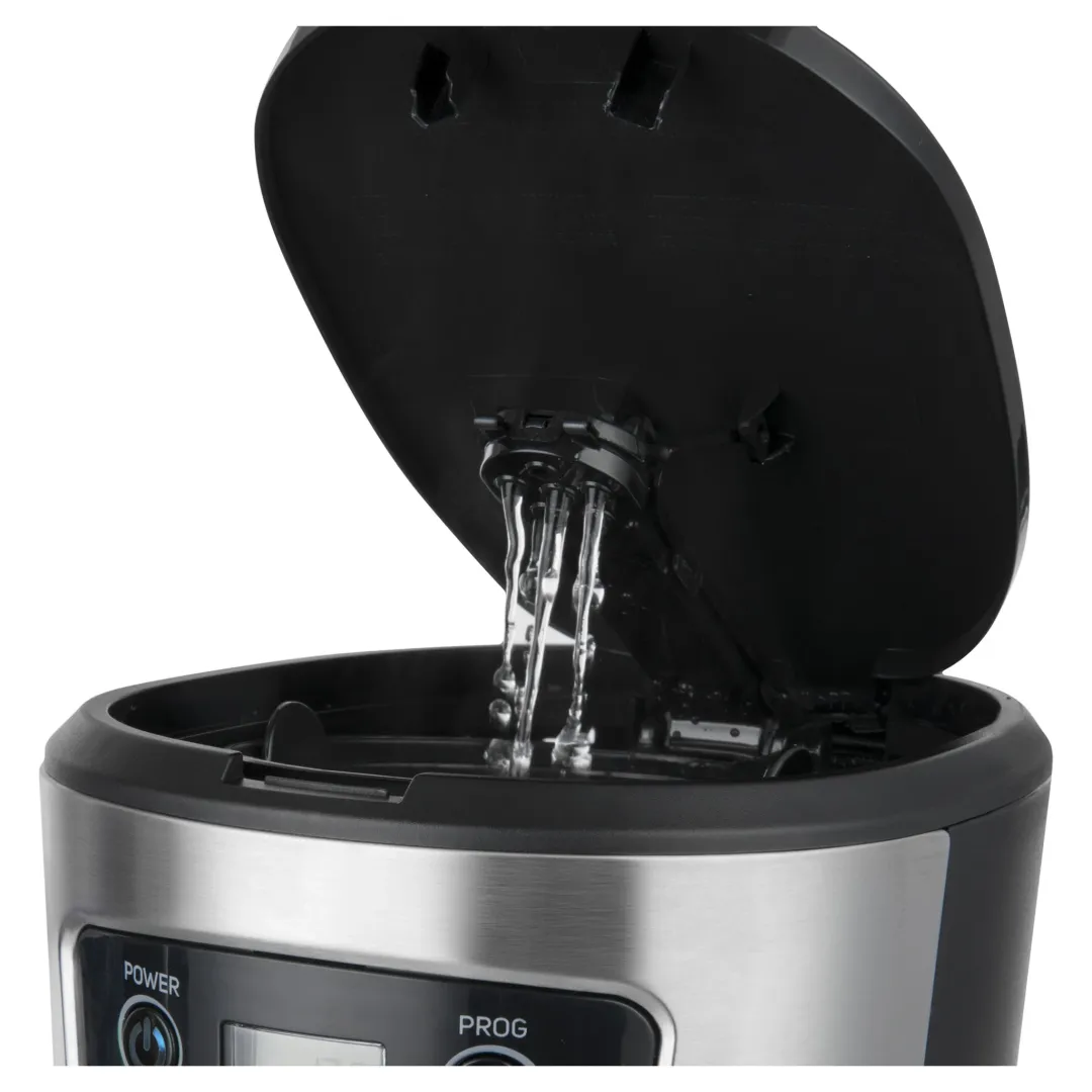 Mutatja a pontos időt, automatikusan főzi a kávét, és végül 40 percig melegen is tartja. Lehetőséged van beprogramozni a kávéfőzés kezdetét, így akár reggel a friss kávé illatára tudsz felkelni. Bármikor megszakíthatod a folyamatomat, kiönthetsz egy csésze kávét, majd visszahelyezés után befejeződik a teljes folyamat. A szünet alatt sem kell aggódnod, hogy csepegés miatt, mert a készülék csepegésgátló szeleppel lett felszerelve.