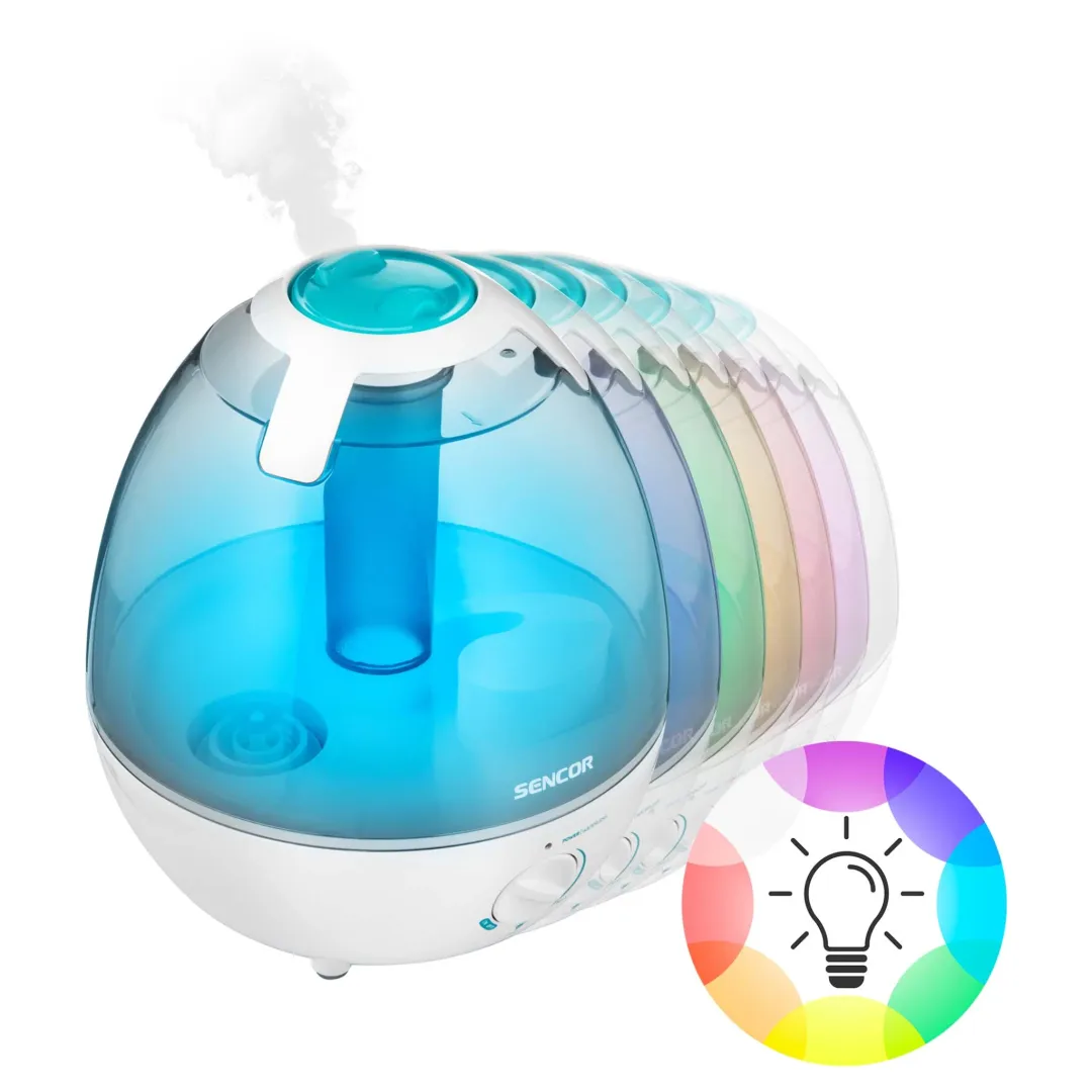 A Sencor SHF 2080WH nem csupán egy párásító, hanem egy esztétikus lakberendezési kiegészítő is. Az Atmosphere Lights funkció lehetővé teszi a hangulatvilágítás beállítását, amely segít ellazulni egy hosszú nap után. A készülék hét különböző színt kínál, és akár automatikus színváltásra is képes. Válassz kék fényt a koncentrációhoz, zöldet a relaxációhoz, vagy sárgát a meghitt légkör megteremtéséhez.