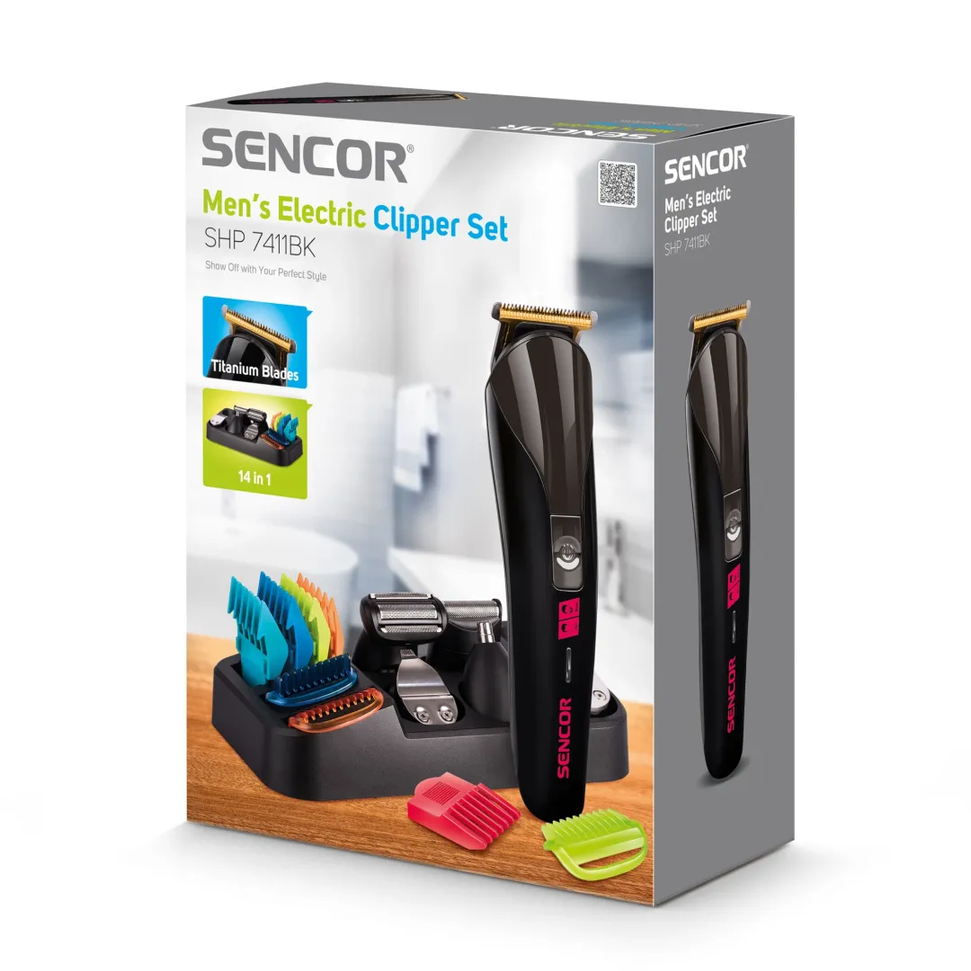 A Sencor SHP 7411BK hajnyíró készülék szett ideális választás a haj, szakáll és testszőrzet formázására, igazítására. A készülékhez 12 különböző cserélhető trimmelő fej tartozik, a vágófejek titánból készültek, így tartósságuk garantált. Vezeték nélkül és hálózatról is működtethető, így lemerült akkumulátor esetén is zavartalanul folytathatod a nyírást. Az ergonomikus fogantyú biztonságos fogást biztosít, nem csúszik ki a kézből.