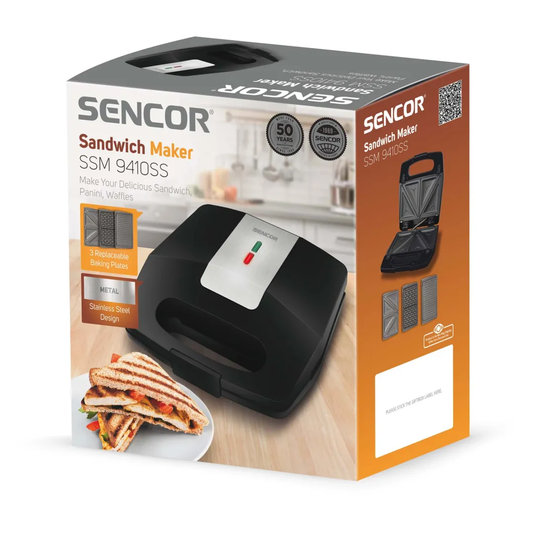 A Sencor SSM 9410SS szendvicssütő 3 az 1-ben funkciójának köszönhetően ideális választás, ha gyorsan szeretnél egyszerű harapnivalókat készíteni. Az három különböző cserélhető sütőfelületen készíthetsz háromszög, alakú melegszendvicset, gofrit vagy akár grillezhetsz rajta húst is. A Teflon, tapadásmentes felülete révén könnyen tisztítható és nem ég oda az étel. A gyors felmelegedést és a megfelelő sütési hőmérsékletet a készülék 700 W teljesítménye garantálja.