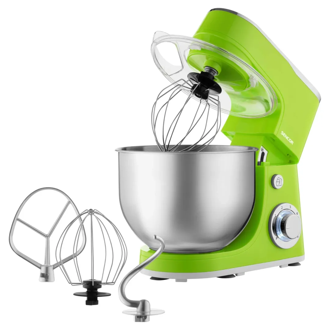 • Akár 1300 W elérhető teljesítmény • 5,5 literes rozsdamentes acéledény • 3 különböző cserélhető tartozék • Bolygóműves keverési rendszer • Bajonett-rendszerű tartozékrögzítés • 6 fordulatszám • Impulzus üzemmód • LED háttérvilágítás a fordulatszám szabályozóban • Felhajtható kar a kényelmesebb munkavégzéshez, tartozékok cseréjéhez • Egyszerűen tisztítható (a rozsdamentes edény mosogatógépben is elmosható) • Hálózati vezeték tároló • Csúszásmentes lábak garantálják a készülék biztonságos használatát • Több biztonsági funkcióval ellátva Tartozékok: • Dagasztó • A-alakú keverőszár • Ballon alakú habverő • Fröccsenésgátló fedél Technikai információk: • Feszültség és frekvencia: 220-240 V, 50/60 Hz • Teljesítmény: 1300 W • Zajszint: 80 dB • Tömeg (edénnyel és tartozékokkal együtt): 6,0 kg