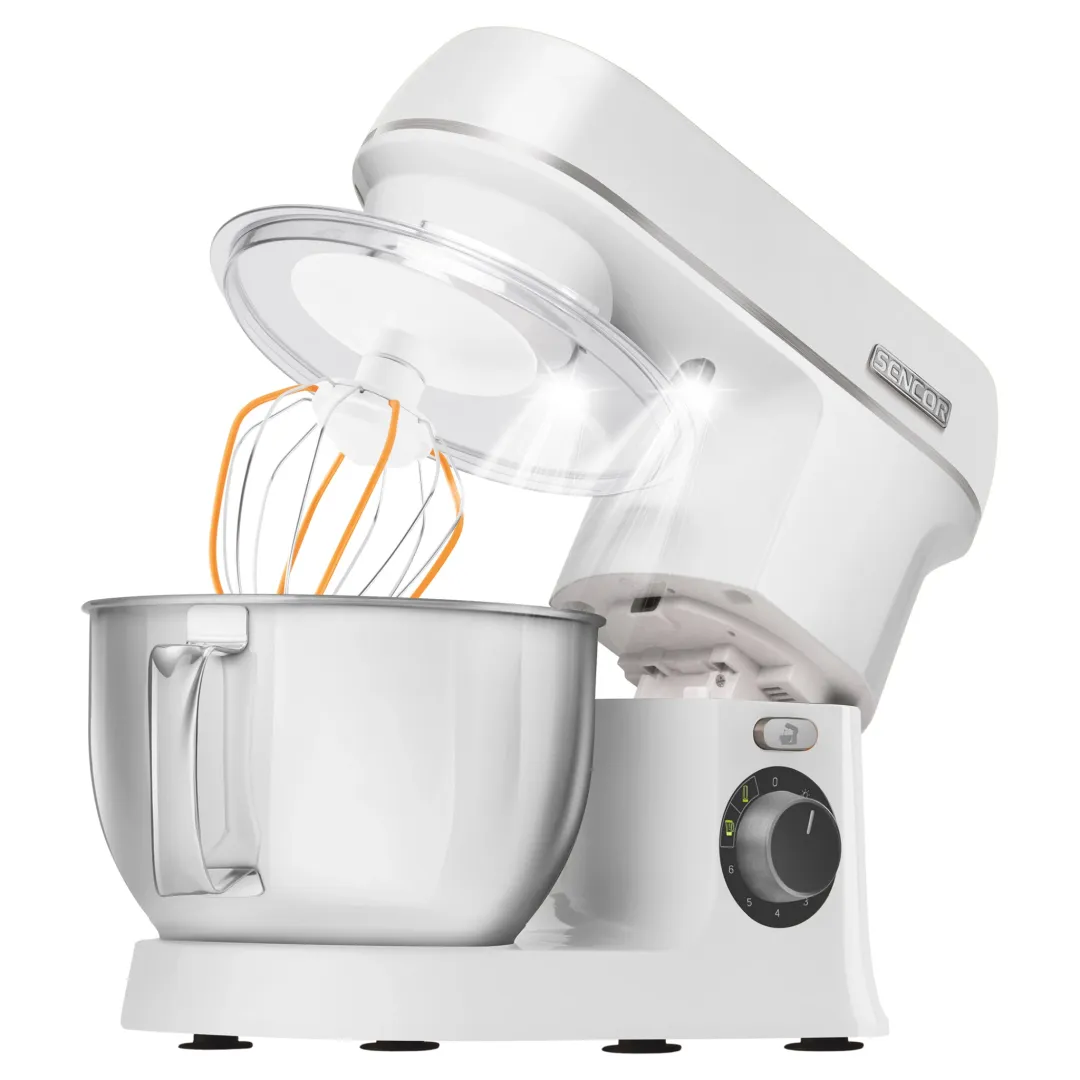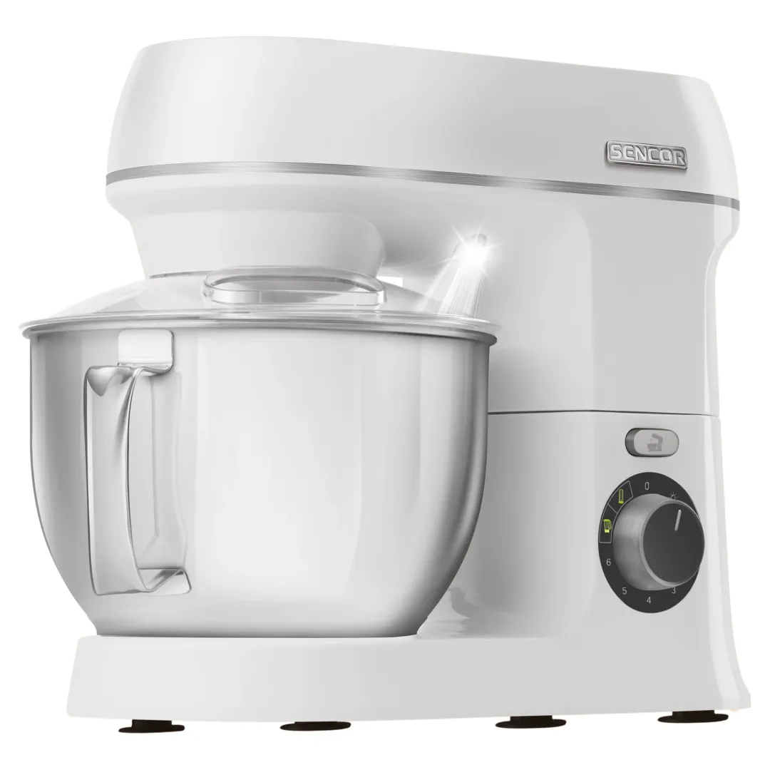 A Sencor STM 3750 konyhai robotgép tökéletes társ a konyhájának. A robotgép nagy 4 literes rozsdamentes acél táljában, nagyobb mennyiségű tészták, krémek készítésére is alkalmas. A csomag tartalmát is képező 4 különböző cserélhető Flexi fejeknek köszönhetően lehetővé teszik a tökéletesen felvert tejszínhab vagy könnyű tojáshab elkészítését, de a dagasztás, illetve könnyű tészták elkészítése sem okoz neki gondot. A bolygóműves rendszer lehetővé teszi az alapanyagok maradéktalan feldolgozását és ezáltal minden összetevő alapos összekeverését. A bolygórendszerű működés lényege, hogy a keverőszár a saját tengelye és a hajtómű tengelye körül is forog. A 1000 W teljesítményű motor intenzitását összességében 6 teljesítmény-fokozattal lehet irányítani.