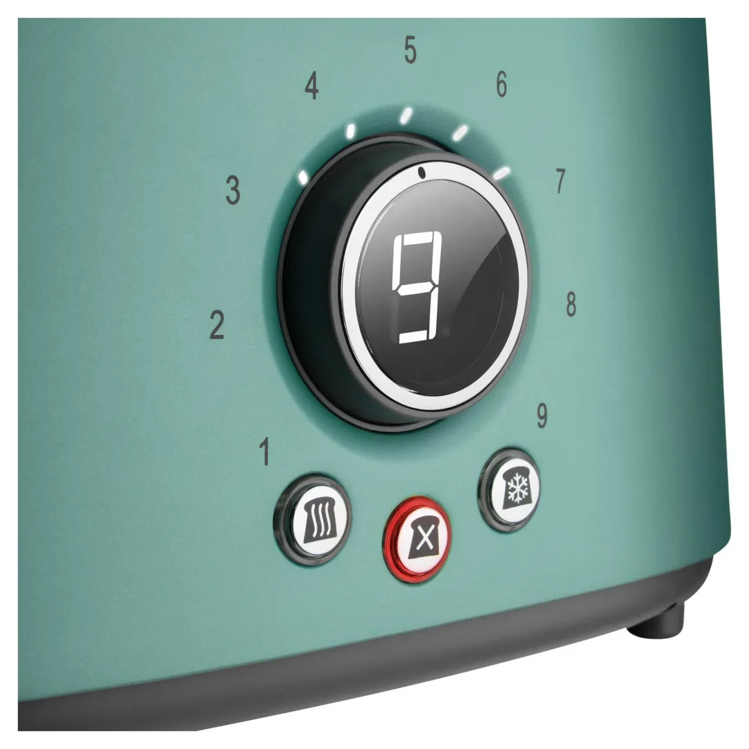 A kenyérpirító használata rendkívül intuitív. Beépítésre került egy LED kijelző is, ahol láthatja az éppen aktuálisan beállított pirítási intenzitást. Lehetőség van 9 fokozat közül kiválasztani a pirítási fokozatot. Az 1-3 alacsony intenzitással pirít, a 4-6 fokozat segítségével közepesen mértékben piríthatja meg a kenyeret, míg a 7-9 fokozat magas intenzitással készíti el a reggelit.