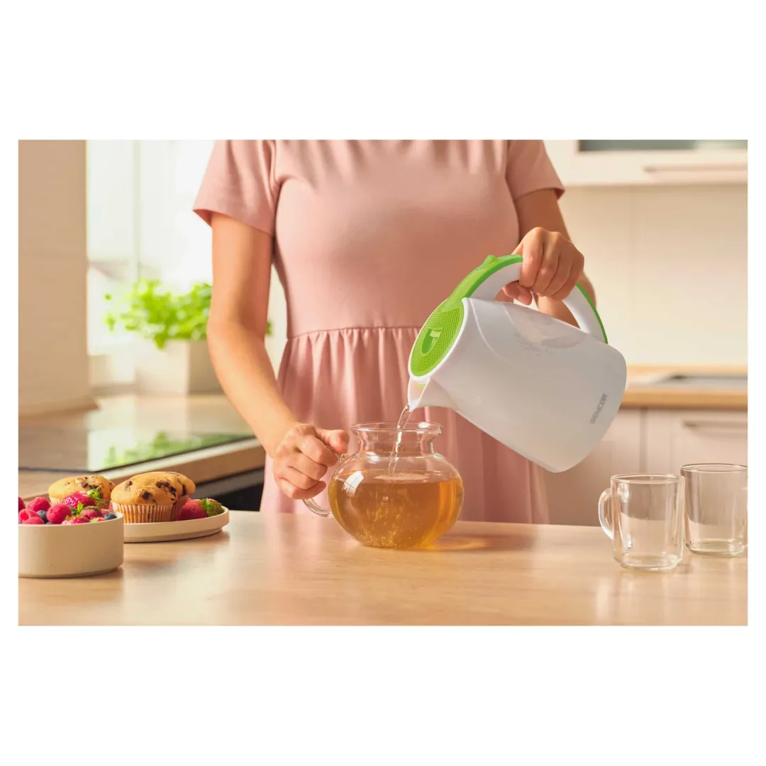 Az egyszerű, klasszikus Sencor SWK 1511GR elektromos vízforralóval időt és energiát takaríthatsz meg. A vízforraló 2200 W teljesítményének köszönhetően gyorsan forralja fel a vizet a teákhoz vagy kávékhoz. Az 1,5 literes kapacitása révén ideális választás 2-3 személyes háztartásokba, valamint a beépített szűrő könnyen és egyszerűen eltávolítható, tisztítható. A vízforraló oldalán vízszintjelző segíti a felhasználót.