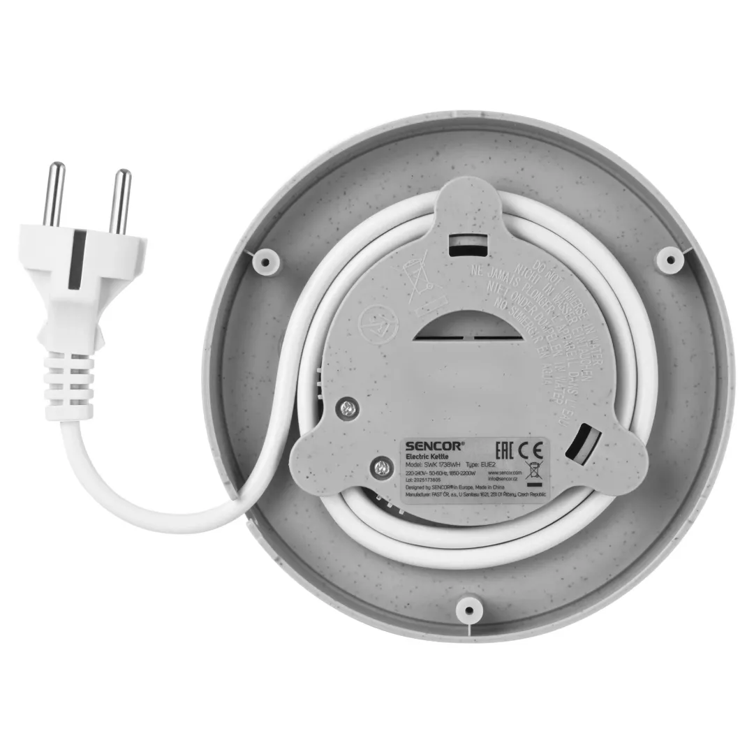 A Sencor SWK 1738WH egy nagy teljesítményű elektromos vízforraló 2200 watt maximális teljesítménnyel, mellyel időt és energiát takaríthatsz meg. Akár 1,7 liter vizet is képes egyszerre felforralni, így 6 vagy több fős háztartásokba megfelelő választás. A készülék használatát ergonomikusan kialakított fogantyú teszi kényelmesebbé. A beépített szűrő könnyen és egyszerűen eltávolítható, tisztítható. A vízforraló kétszeres biztonsági rendszerrel lett felszerelve. A 360°-ban elforduló talpnak köszönhetően a tápkábel sem fog zavarni a munkában. A designnak köszönhetően minden konyha ékessége lesz. A speciális kialakítású kiöntőnek köszönhetően egy csepp víz se veszhet kárba.