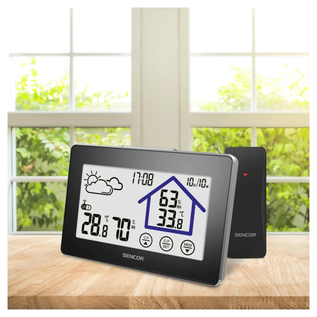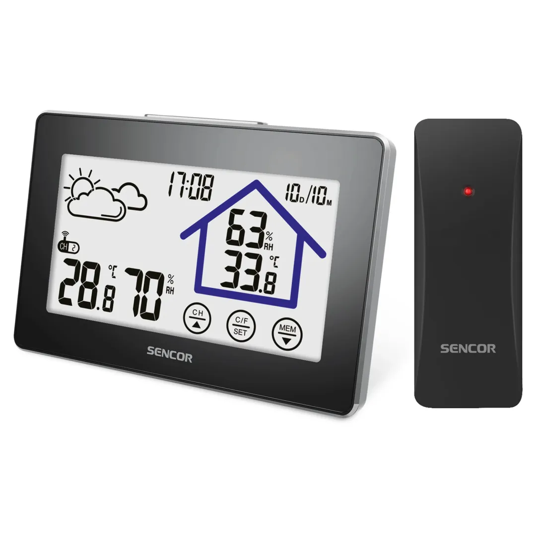 A Sencor SWS 2999 egy megbízható és praktikus időjárásállomás, amellyel könnyedén mérheted a külső és belső hőmérsékletet, valamint páratartalmat. A kristálytiszta LCD kijelzőn látható az idő, dátum és a hét napja, emellett ismétlődő ébresztés is beállítható. A készülék asztalra helyezhető vagy falra is szerelhető, és akár 50 méteres hatótávolságon belül kommunikál az érzékelőkkel.