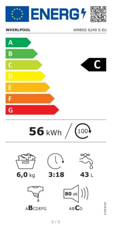 Whirlpool WRBSS 6249 S EU keskeny elöltöltős mosógép